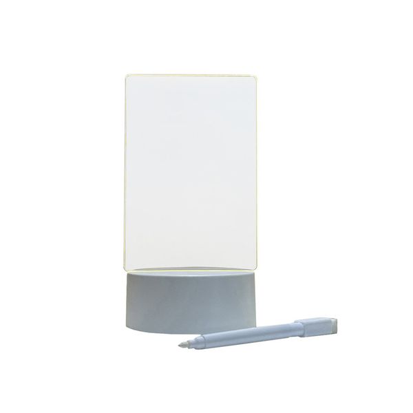 این محصول دارای پایهای مجهز به یک رشته چراغ SMD است که نور آن به صفحه پلاستیکی شفاف و بیرنگ تابیده میشود و جلوهای چشمنواز و فریبنده ایجاد میکند. ویژگی منحصربهفرد چراغ رومیزی Creative، قلم مخصوص نوشتن آن است که به شما اجازه میدهد یادداشتها، پیامهای یادآوری یا اطلاعرسانیهای دلخواه خود را روی صفحه شفاف بنویسید؛ با روشن شدن چراغ، نوشتهها بهوضوح نمایش داده میشوند.